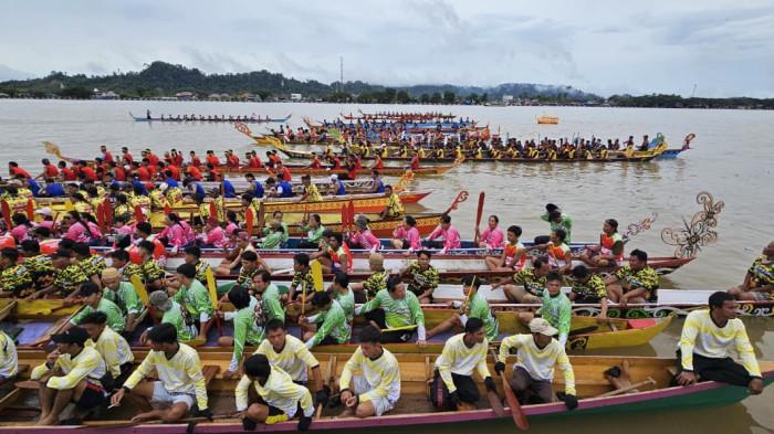 Deretan perahu warna-warni menghiasi Sungai Kayan, menciptakan pemandangan spektakuler yang memadukan tradisi, seni, dan semangat kebersamaan masyarakat pesisir.