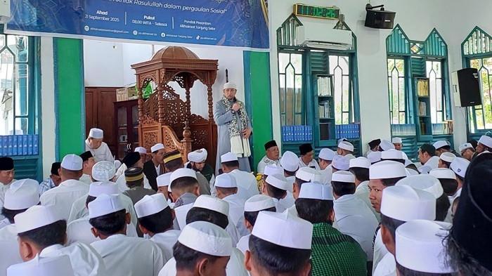 Suasana khidmat dan penuh syukur terpancar dari setiap wajah jamaah. Mereka duduk rapi, menyimak dengan hikmat setiap rangkaian acara. Keistimewaan tahun ini begitu terasa. Maulid Akbar dihadiri langsung oleh sosok sentral yang sangat dihormati, Habib Sayyid Alwi Saggaf Al-Jufri, Ketua Utama Pusat Perguruan Alkhairaat yang khusus datang dari Palu, Sulawesi Tengah. Kehadirannya bukan hanya sebagai pembicara, tetapi juga sebagai penguat tali silaturahmi antara pusat dan daerah, sekaligus penegas bahwa semangat mencintai Nabi adalah inti dari seluruh kegiatan Alkhairaat.