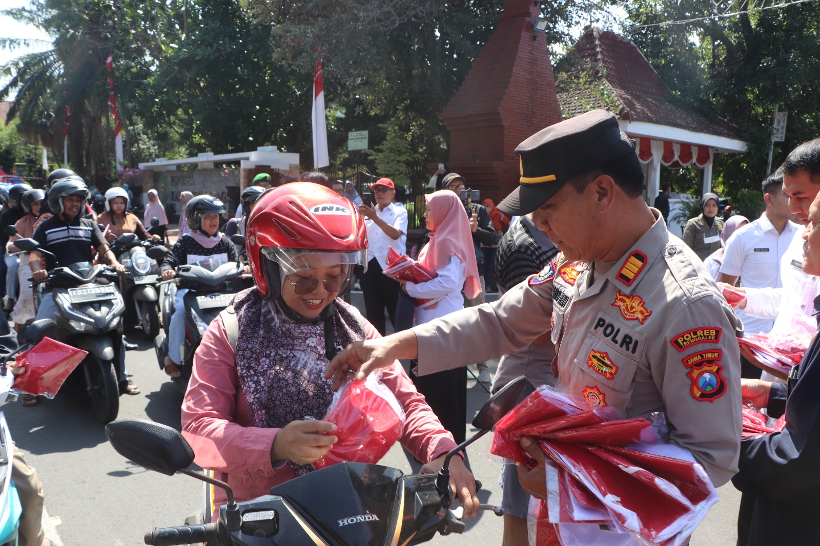Di Tanjung Selor, pembagian dipusatkan di kawasan Pasar Induk Tanjung Selor yang menjadi salah satu pusat keramaian masyarakat. Kapolresta Bulungan, Kombes Pol Rofikoh Yunianto, melalui Ps Kasi Humas Iptu Magdalena Lawai, menjelaskan bahwa kegiatan ini merupakan bentuk ajakan kepada seluruh lapisan masyarakat untuk ikut memeriahkan peringatan hari bersejarah bangsa Indonesia.
