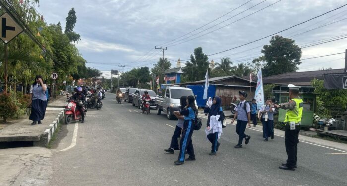 “Kami menempatkan personel di titik-titik tertentu untuk mengatur arus kendaraan, membantu penyeberangan pelajar, serta menegur pengendara yang melanggar aturan lalu lintas seperti tidak memakai helm atau melawan arus,” ujarnya.